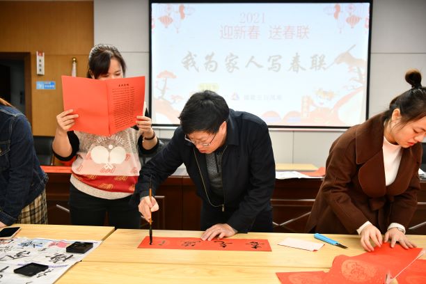 濃厚的活動(dòng)氛圍也吸引了該公司黨支部書記江興榮的目光,“咱們公司真是人才濟(jì)濟(jì)呀!以后公司辦公樓、宿舍樓的春聯(lián)就交給你們啦。自家的春聯(lián)自家寫,這樣寫出來的對(duì)聯(lián)才更加情真意切!”