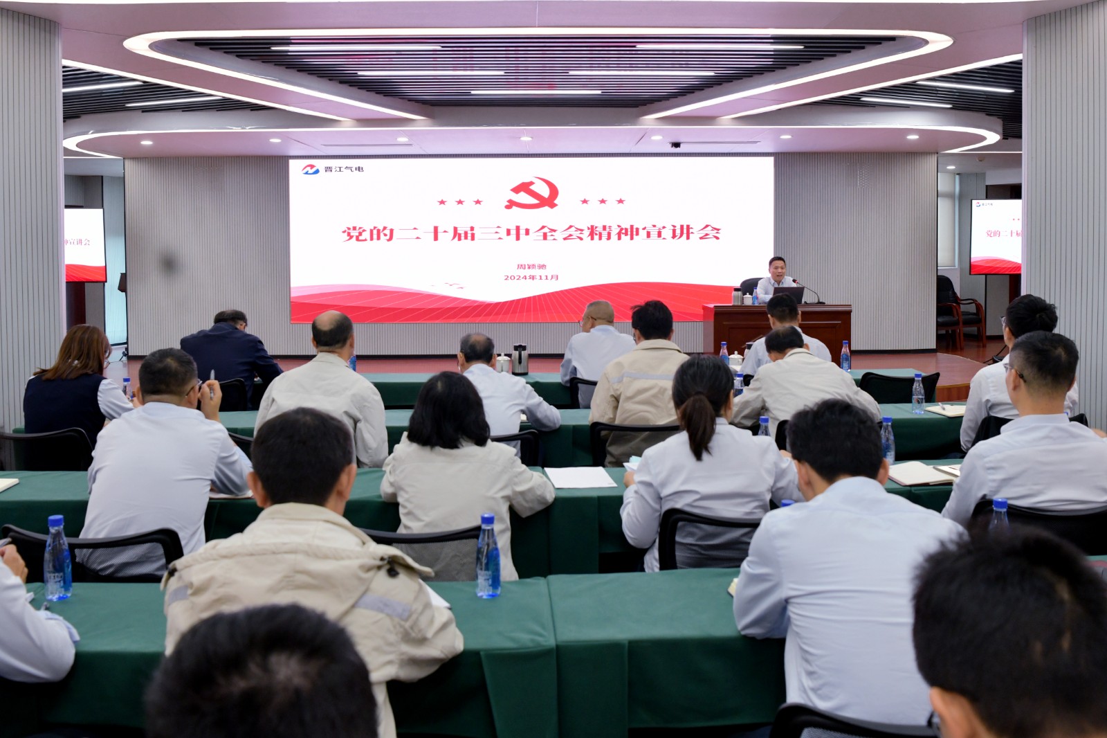 為深入學(xué)習(xí)貫徹黨的二十屆三中全會(huì)精神,進(jìn)一步統(tǒng)一思想,凝聚合力,11月19日上午,公司召開黨的二十屆三中全會(huì)精神專題宣講會(huì),公司黨委書記、董事長(zhǎng)周穎馳作集中宣講,公司黨員、團(tuán)干共計(jì)70余人參加。